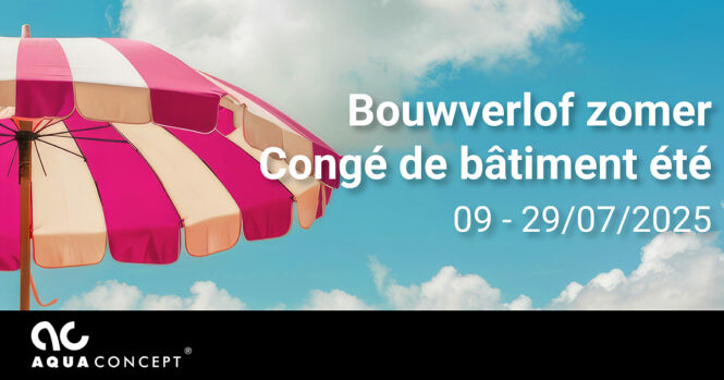 Graag informeren we jullie: Aquaconcept zal gesloten zijn vanaf woensdag 9 juli 2025 (12u30) tot en met dinsdag 29 juli.